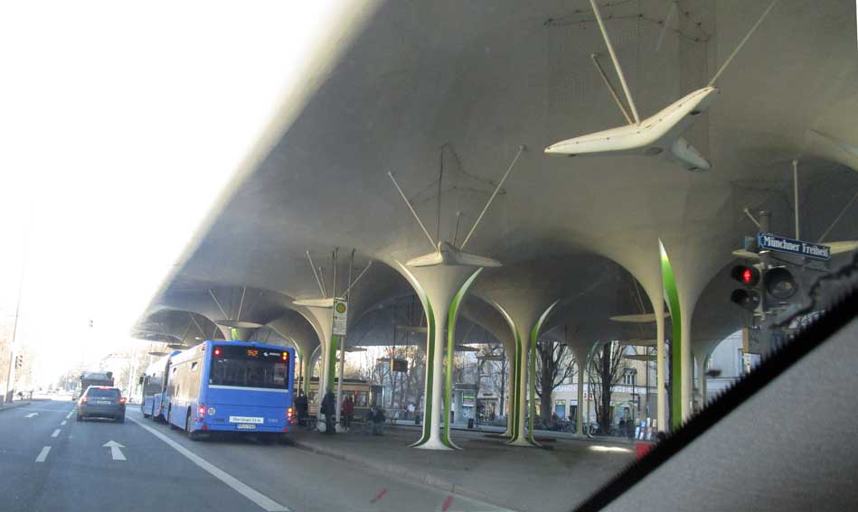 Und Bushaltestellen mitten auf dem Platz aus Plastik armer Ludwig