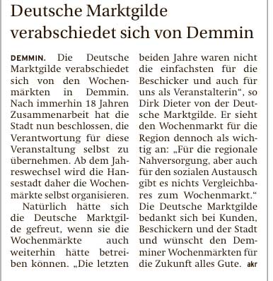 Der Markt in Demmin existiert nicht mehr. Was heisst das. Es ist das Herz einer aktiven Stadt.