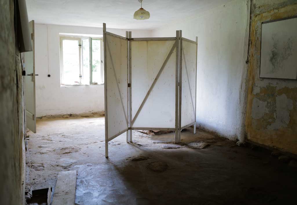 Die Kinder nannten es -das Zimmer mit den offenliegenden Steinen- Folterzimmer. Es ist jetzt eine Einheit von zwei Räumen der Betten - Blicke durch eine offene Tür verbunden. Im hinteren Zimmer wurden -dem Grundlsee-Zimmer- die Steine, durchs Haus ziehend, hinten, noch entfernt. Jetzt vor dem Fenster draussen.
