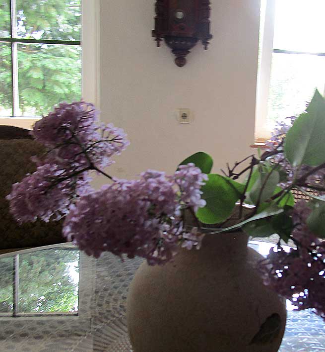 hier nun mit der neuen Generation von Flieder, der aufhört und den Rosen, die anfangen
