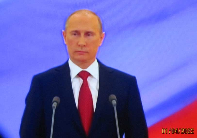ein Vernichtungskrieg vor aller Welt selbstgewählt die Welt-Pistole auf dem Tisch nachgemacht