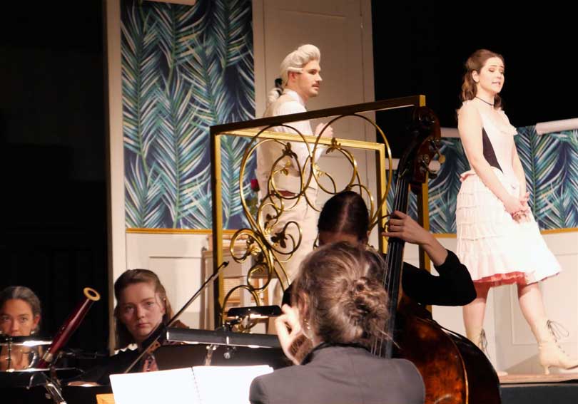 Das sichtbare Orchester mit dieser Leitung (Johanna Soller) erhöht die Spannung.