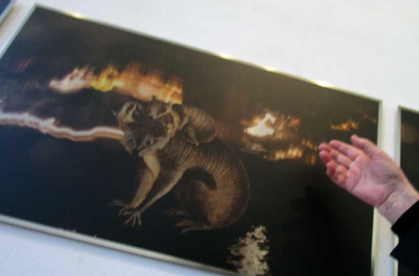 und von dann W.Benjamin und seinem Bilderbuch mit diesem Bild zum Thema Mutterwitz, wie das dem Kleinen sich einfühlte in den pelzigen Rücken der Mutter schütz zu sein. Aufgenommen vor dem irritierden Lichter- Meer von Amsterdam. in langen Belichtungszeiten der Licht-hungrigen Kamera