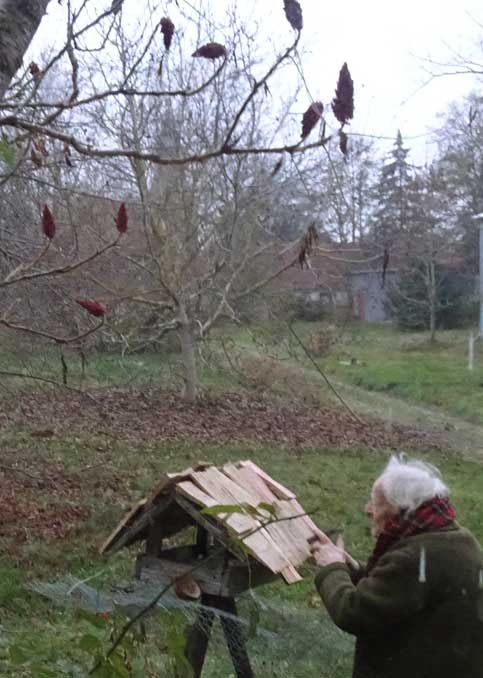 Und oben das Dach drauf befestigen, dass nichts fällt, wenn die Stürme kommen. Sie habn s gernen , wenn einer sich kommert.