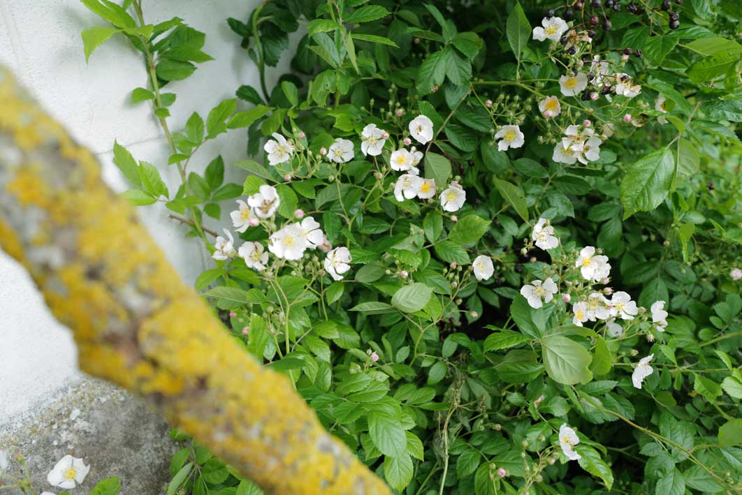 zu den Rosen oben nun der Rhodondendron unten und die Wiesen vor der Blüte auch der Gräser, die Wege hindurch.