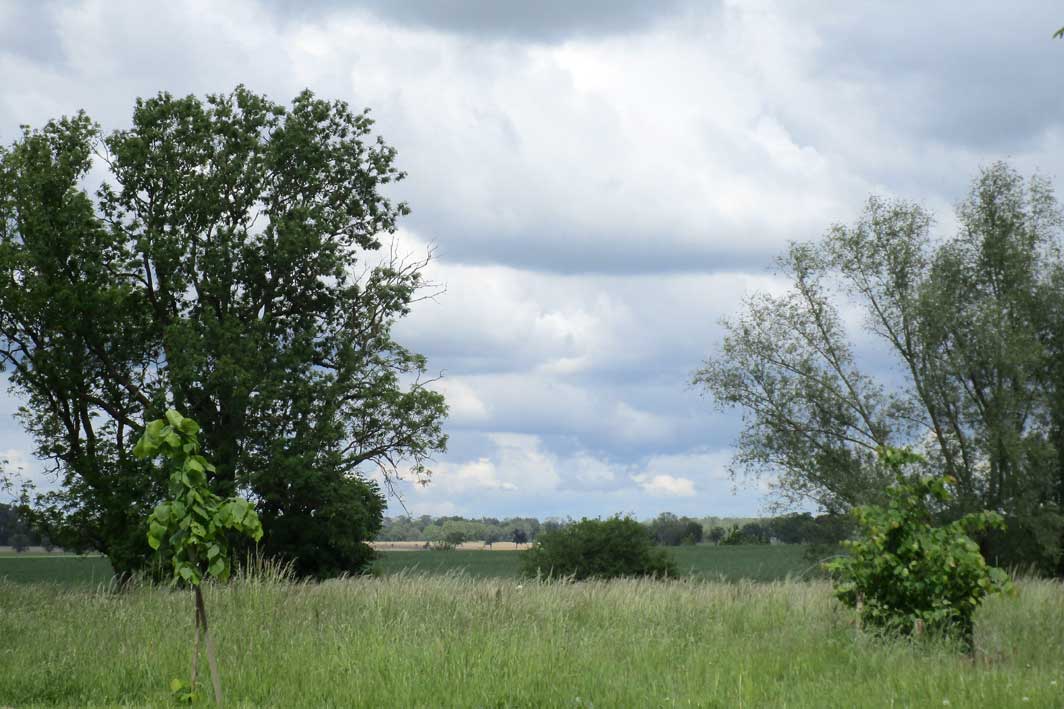 und so der Blickrichtung Norden, dh. hier Medrow, wo das Schloss nun mit seinem Park untergeht. Und wo die Ulmen der Einfahrt zum Ort geopfert wurden, damit die Traktoren bessere Sicht haben, wenn sie die Bundesstrasse überqueren.