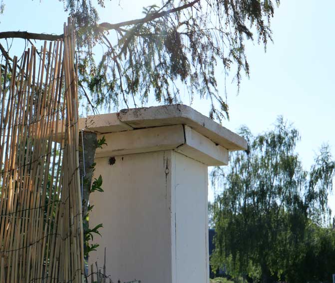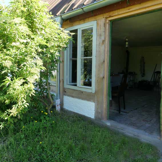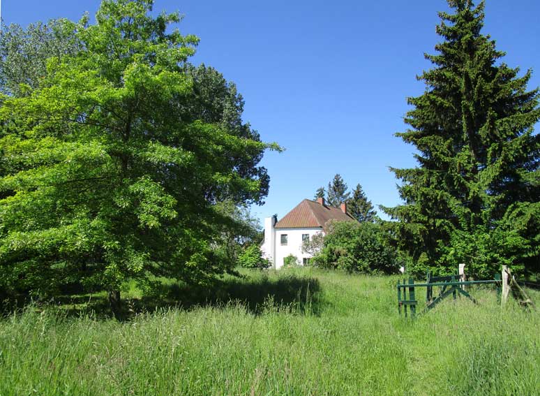 wir unter der Linde vor der Küche wieder mit herabhängenden Zweigen die uns Schatten gebe, behütenden und neu ausgetrieben nach dem Sturz
