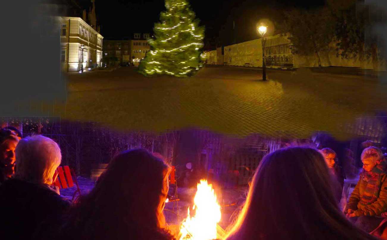 vor 7 Jahren montierter Weihnachtsmarkt in Demmin nach dem Sommer mit den Fassaden wieder auf der Markt-Südseite, dass es ein Platz wird. interessant ist, was hinter der markierten Hist-Fassaden möglich wurde. Ein Park -und dahinein was Neues?