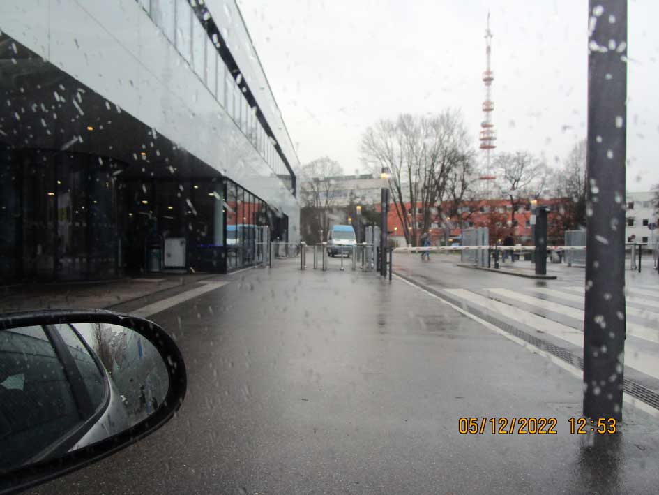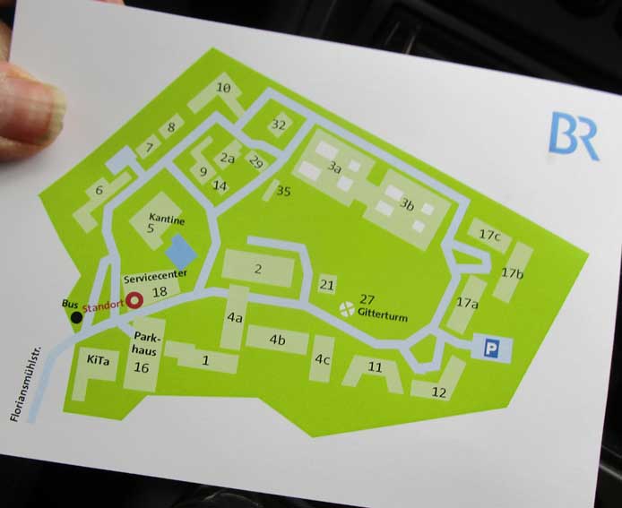 Anfahrt zum BR, Fernsehn München Freimann, auf Schleichwegen, da die Hauptanfahrt durch Stassenkleber blockiert ist.