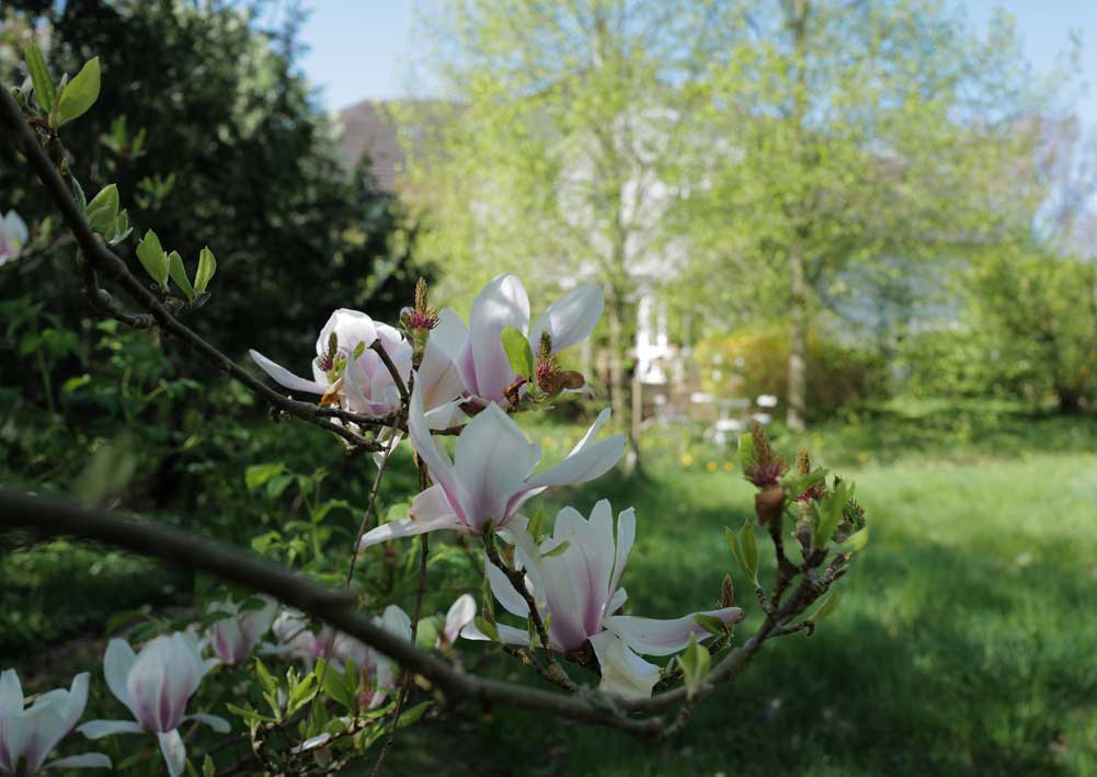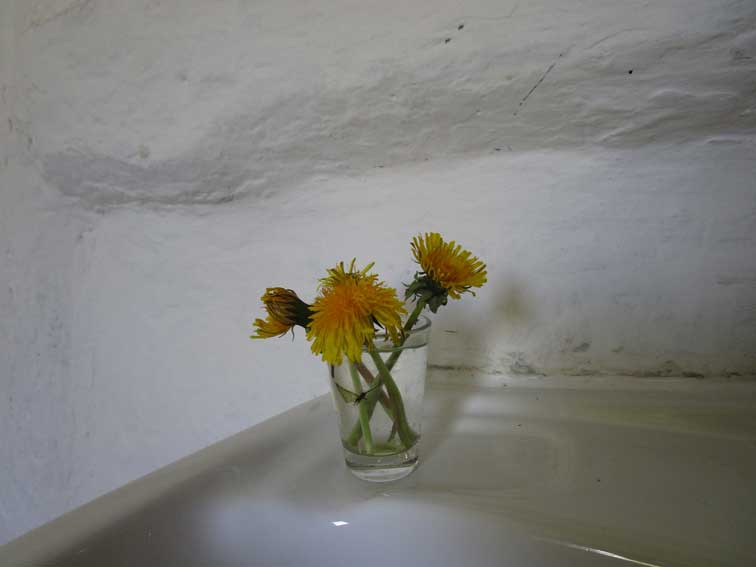 aber gleich danben das Haus an der Koppel, wo der Alfred zuletzt wohnte von damals, ist das Bad mit dem heissen Wasser aus der Wand nun schnell zu erreichen über die Wiesen und durch die Blüten von oben und unten im Mai
