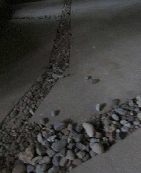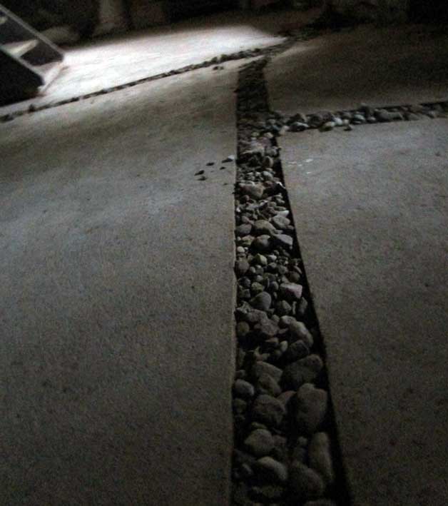 Da der Boden befestigt war mit Zement durch den auch nichts nach unten abfliessen konnte, schlugen wir Kanäle in den festen Boden zum Abfluss in das Loch der Pumpe, dass der Boden trocknete und bedeckten die Rohre mit den Seiten- Löchern in den Kanälen mit Kieselsteinen zur Ebene des nun wieder möglichen Betretens. Nun war Ruhe hier und nur draussen noch die AblussKanäle zu graben mit Teichen, statt des Grabens früher, der alles absog in die Trebel über Felder und Wälder rundum. Einfach mit dem, was da war. Und das waren nun wieder wir. Und - siehe da, es ging. Ganz einfach. Seit dem da wieder Bäume stehen und Sträucher auf dem ehem. Graben sind auch die Überschwemmung weg. Und der Keller frei von Wasser.