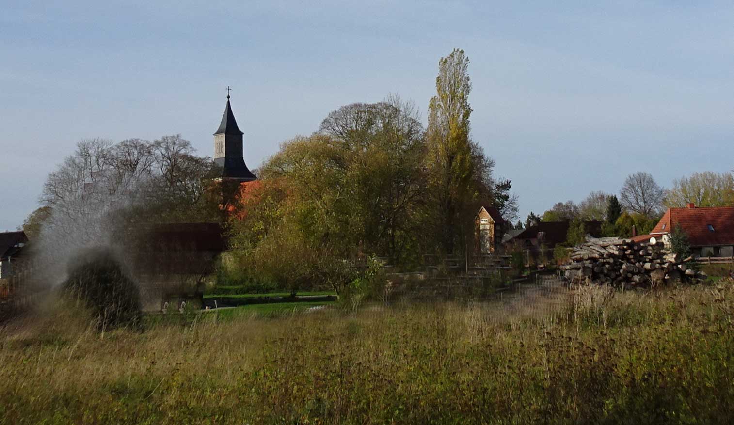 Auch hier noch bis 2006 stand das Wasser auf dem sogen. KapHof ohne Abfluss, wo sie den Graben verrohrten, dass nichts abfloss wie im Park des Guts-Hauses und sie uns nun jagen bis vor die Gerichte, da wir versuchte eiszeitliche Graben-Ordnung wieder herzustellen. Nachdem es aus allen Richtungen floss und alle Kulturversuche behinderte, die nur mit nicht gegen die Elemente sein kann.