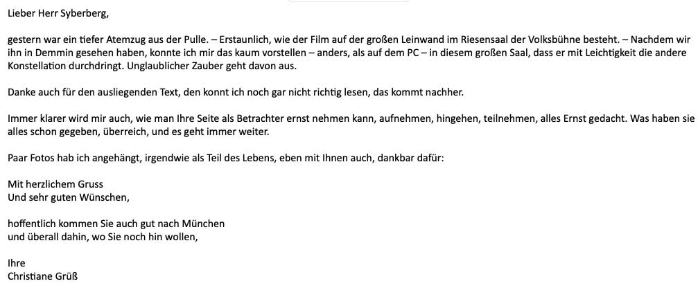 ch, der den Film nun vertreibt, ins Land danach auch, begrüsst uns zu unserer kleinen Familienfeier hier, trotz Bahnstreik und Ausfällen der Freunde ausserhalb Berlins. Film und Teilnemer.