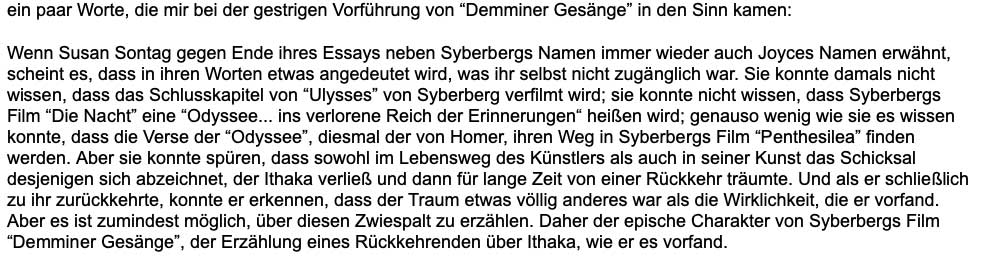 > und zum Film selbst gibt es viel zu sagen was er ist und soll. Mit A.Düttmann von der UdK(Univers. der Künste hier in Berlin um die Ecke). Vielleicht wie das enstand und gebaut ist.