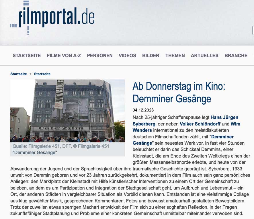 aber Freund und Kollege M. Farkas des Films vom ("Überleben in Demmin" der Vorrgänger und Zulieferer professioneller Zitate das neuen Films jetzt