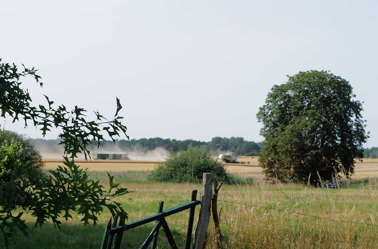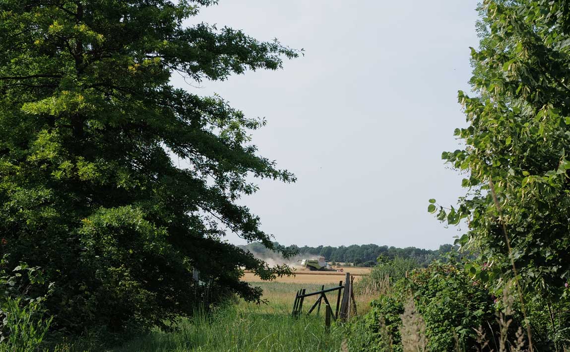 auf den Feldern Ernte vor dem Regen, Mähdrescher, wie im Krieg, wieviel Rehkitze wirds erwischen, die Lerchen sind schon alle weg, Glyphosat weiter erlaubt in der EU.