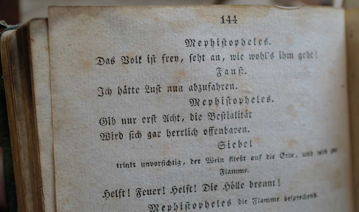 Aus Auerbachs Keller, wenn sich der Faust auf den Weg macht, geführt vom Teufel und was der dazu sagt. 24 war der Autor als ers schrieb. Und Brecht daür verboten unter seinen Leuten, weil er Der Mai ist gekommen dazu singen liess .