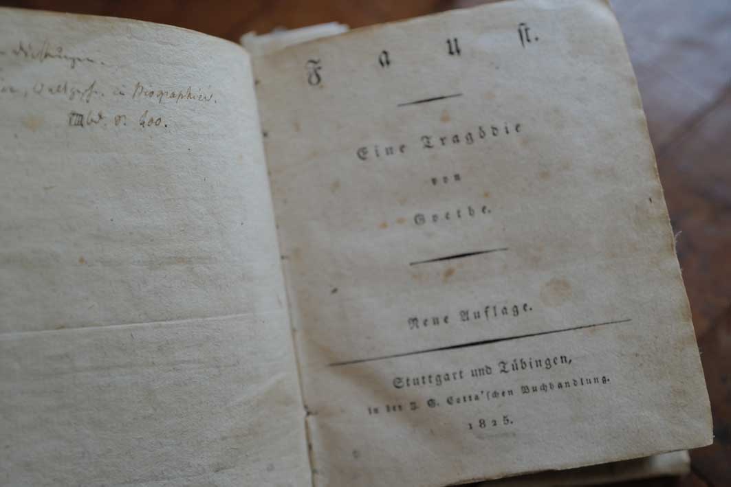 historische Ausgabe Goethe zu Lebzeiten Faust mit etwas abenteuerlichem Umschlag Hand-geschöpftem Papier eines Vorgängers