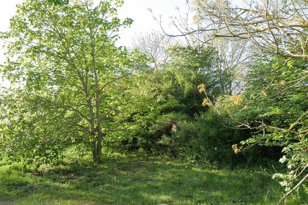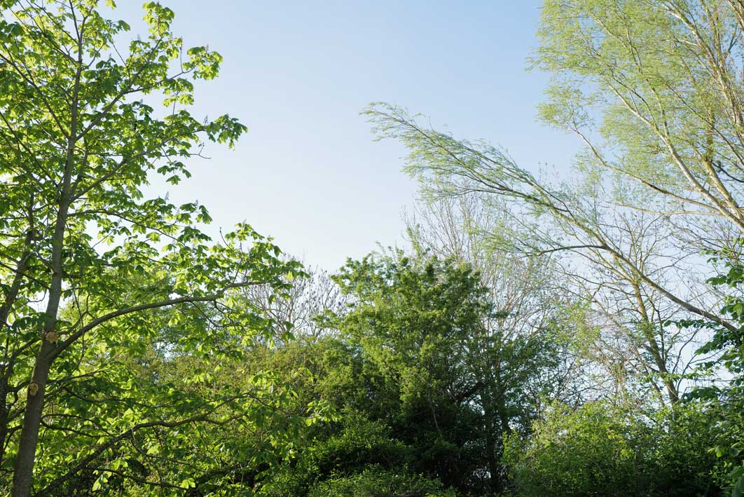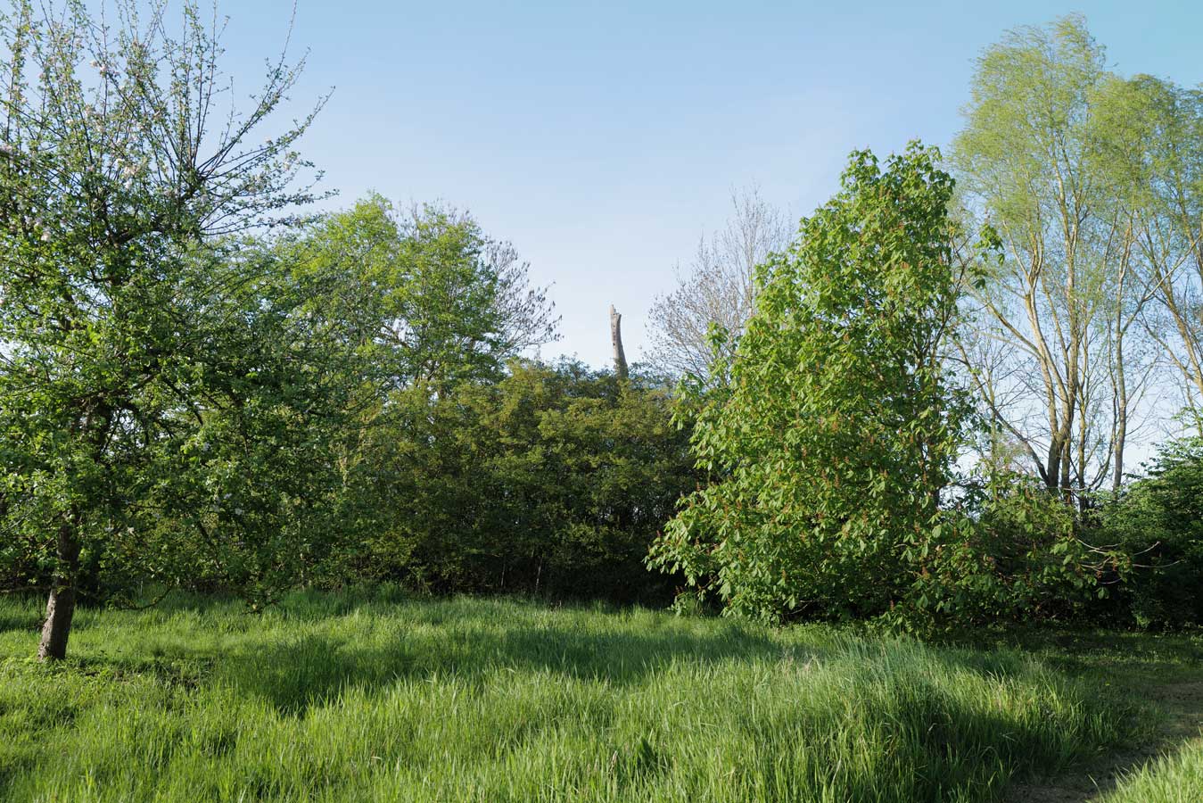 Dort wo die Ulme stand, rechts von der halben Kastanie, die sie umriss, mit den schütteren Weiden nun daneben.