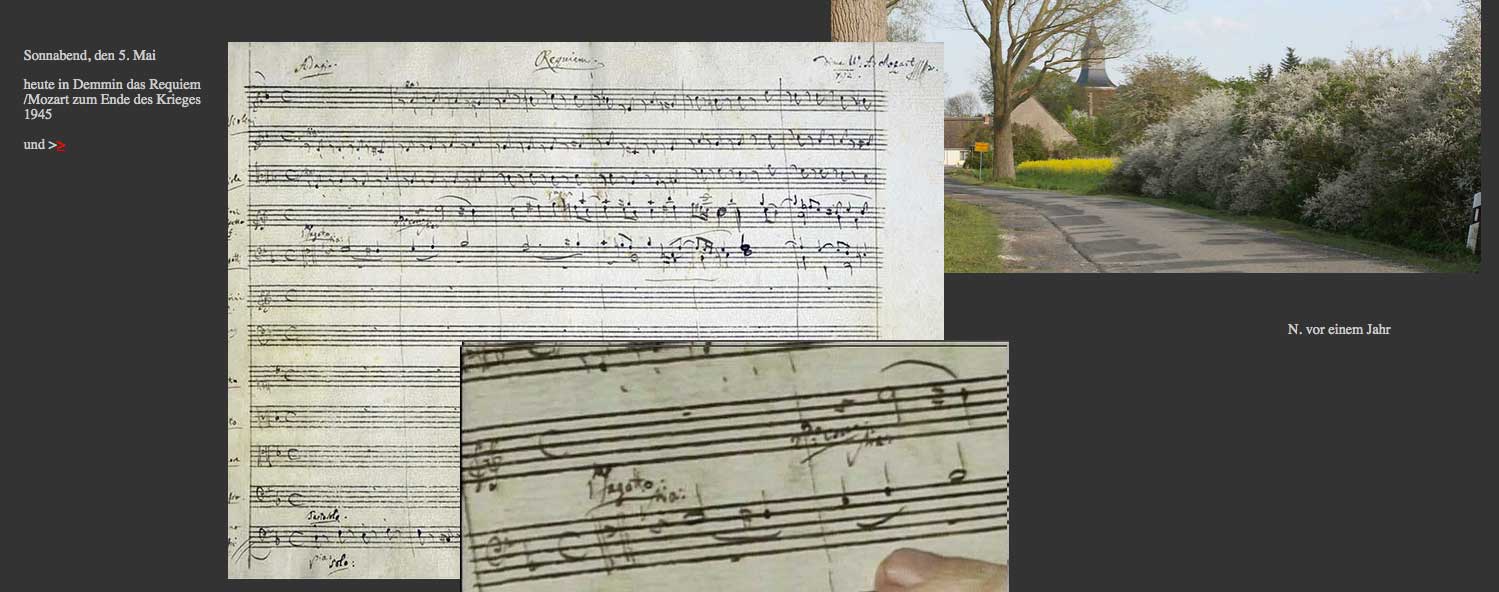 Damals vor 5 Jahren Anfang Mai das Requiem vom Mozart . Den Toten Demmins von 1945 zum Gedächtnis