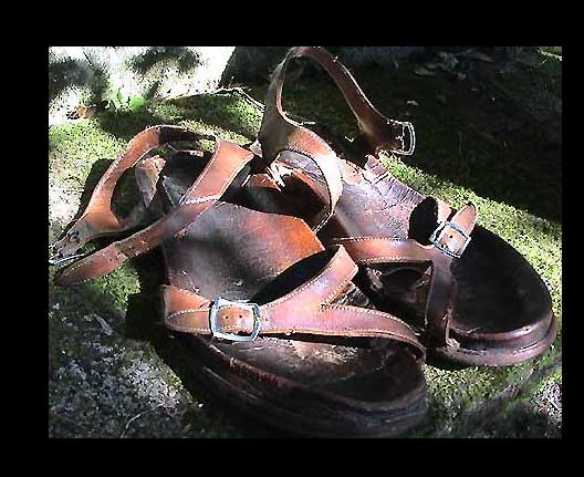 Die alten Bally-Sandalen als Vorbild . Vor 20 Jahren hier bei uns als Einstand > wie sie den Träger, als Schüler noch, eben im Westen angekommen,ab 1954 per Autostop nach Venedig, Rom und Paris bis Edinburg brachten. Das Kostbarste auf dem Markt, effektiv. In der Idee und Ausführung. Ganz schön herumgekommen. Wo finden wir den Schuster heute sie wieder flott zu machen. Hier als in MV das neue Werk von Birkenstock (Arbeitsplätze! Wohlstand!!) kam, wurden erstmal die alten Alleen gefällt, damit die Zufahrten für die grossen Baumaschinen bequemer durchkommen. Wer klatscht da, und das war nur der Anfang, lachte der Teufel:" die Hölle brennt, " inzwischen nicht nur sie.