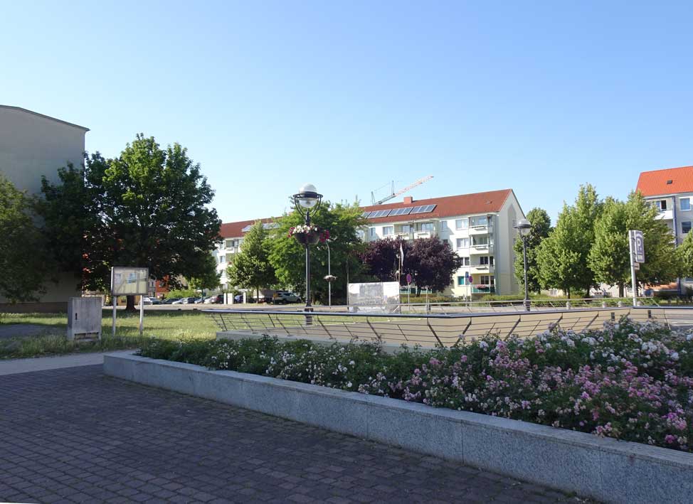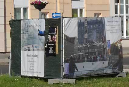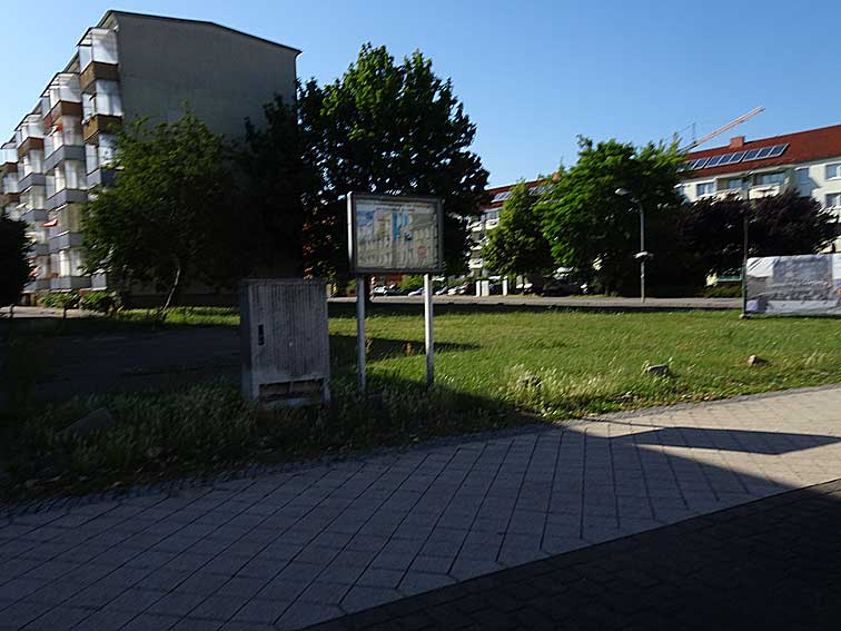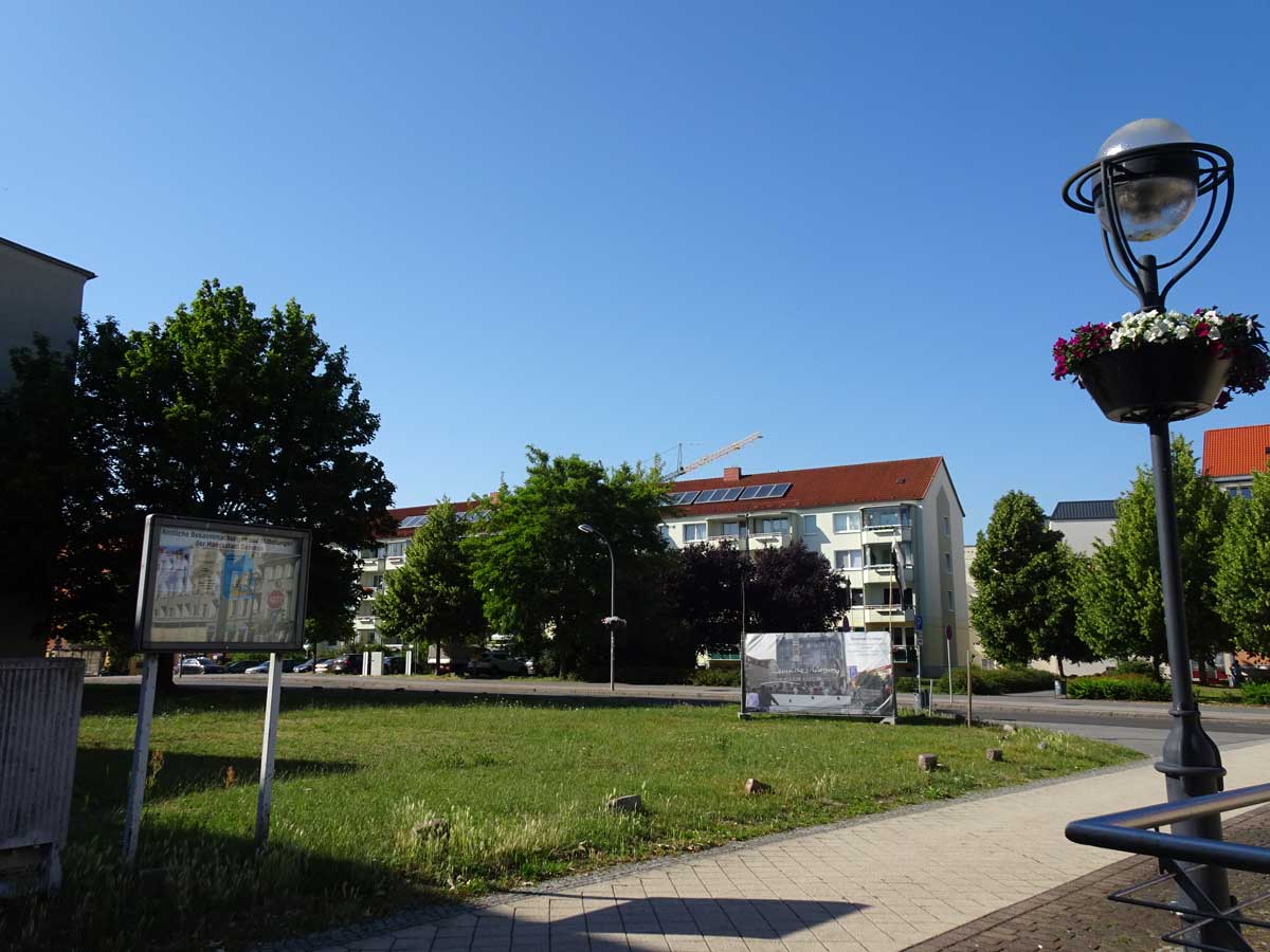 Der Platz, wo das ehemalige Cafe Zilm stand mit Installation und Gedenkort des Films dazu.