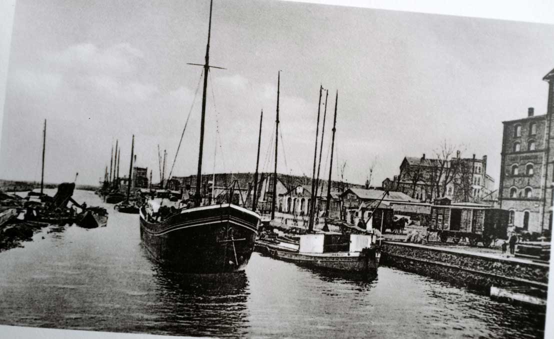 Hafen hist. Asicht heute ohne Schiffe LKW Parkplatz