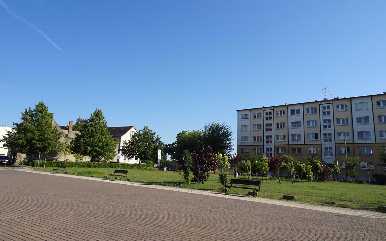 Die Luisen Strasse der Läden heute durch bewohnte querliegenden Plattenbauten an der Clara Zetkin Strasse ersetzt - und ausgelöscht.