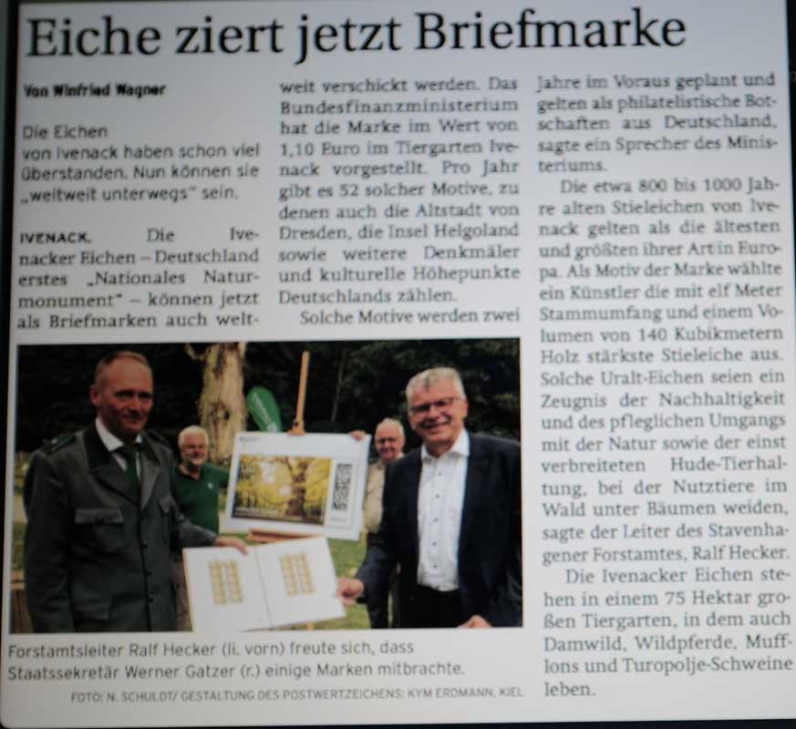 nun auch im Nordkurier die Lügen von den Ivenacker Eichen in offizieller Version als Nationaldenkmal gefeiert - und 24 EICHEN im Dorf Ivenack in diesem Jahr gefällt- MIT Unterschrift aller zuständigen Ämter und Oranisationen, trotz Vorlagen der Unbedenklichkeiten für jedem Baum: Denkmalamt, Umweltamt, BUND, Kreis Seenplatte.