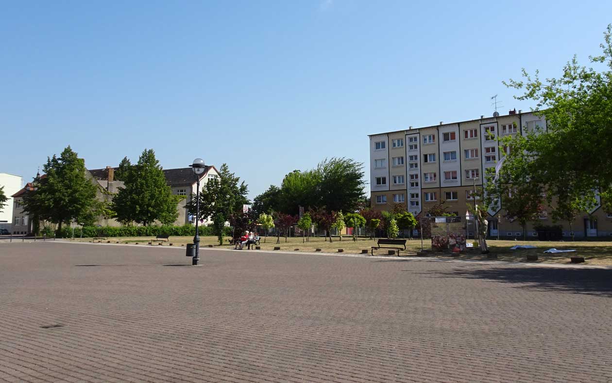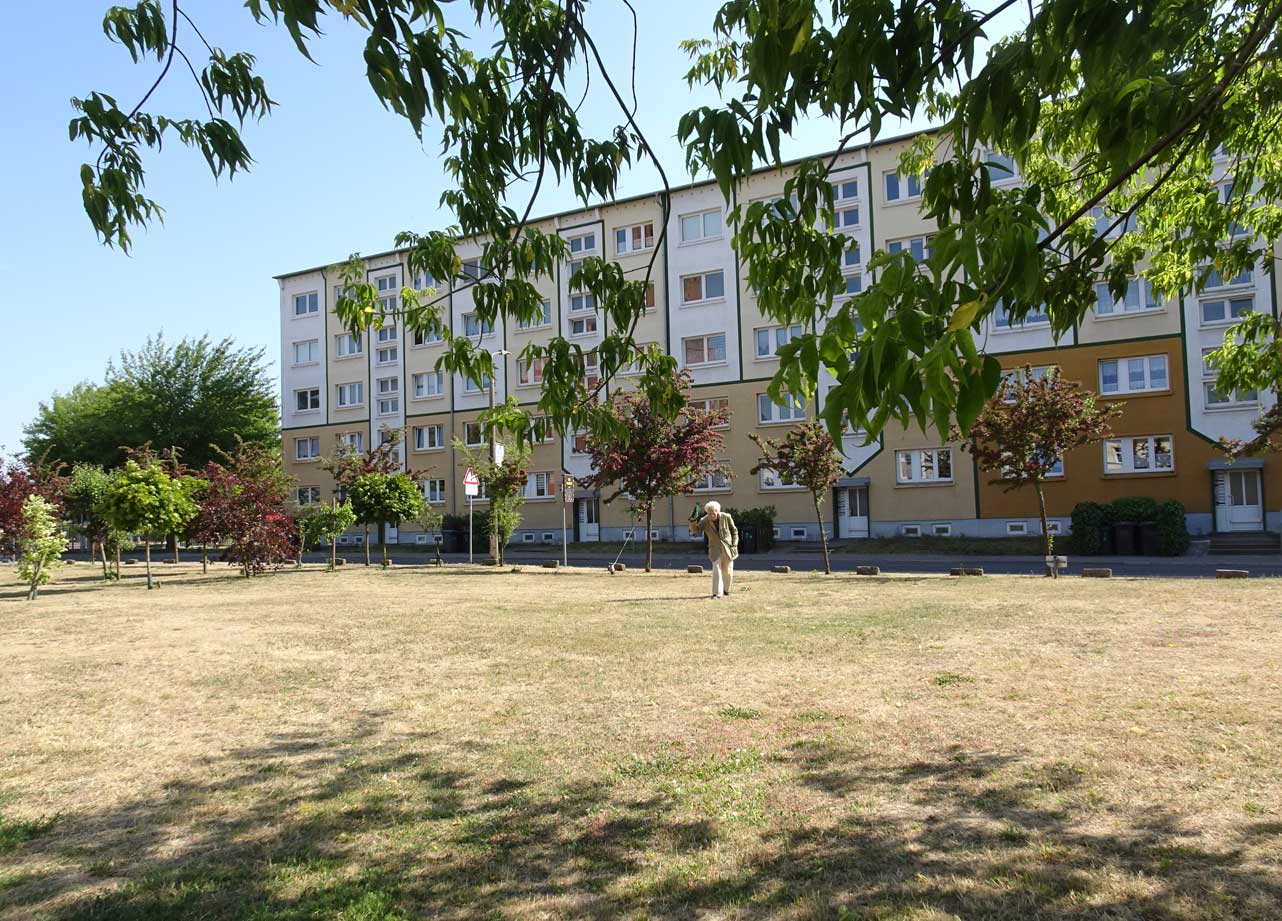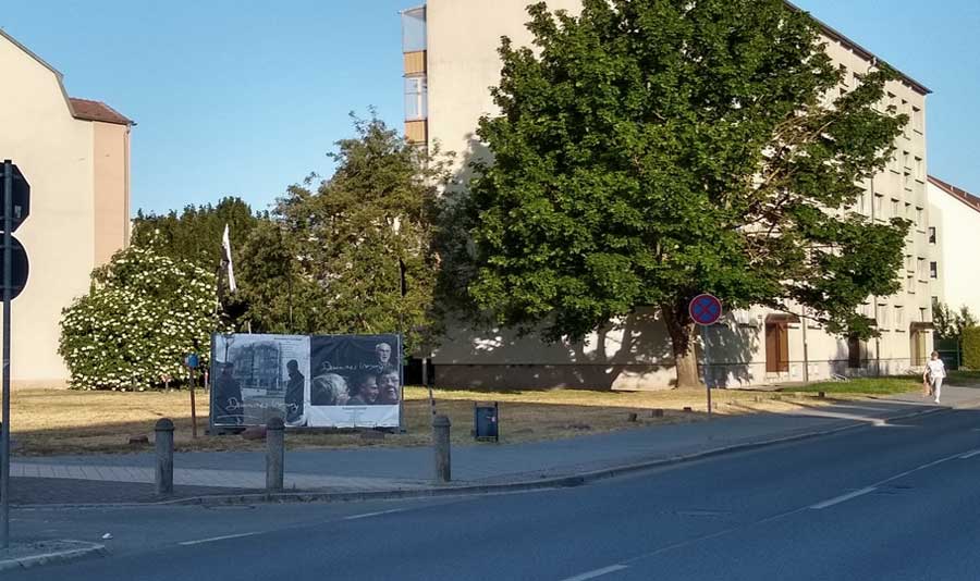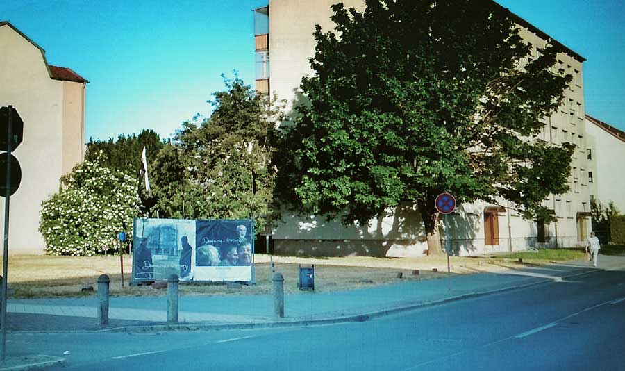mehr herangeholt die Plattenbauten, davor die aktuelle FilmMarkierung im Raum. Foto MG