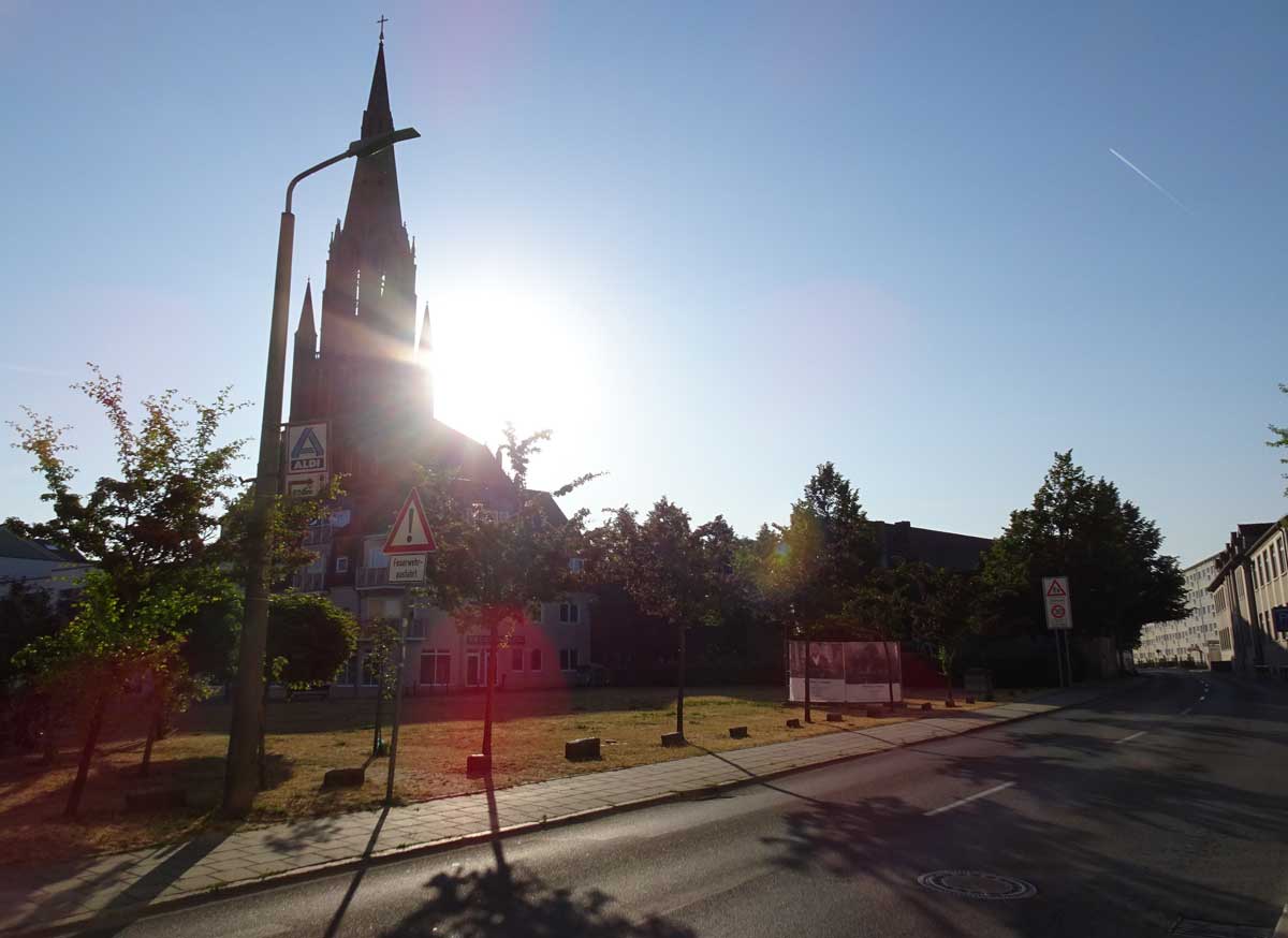 eingezwängt zwischen die Neubauten und restaur. Resten der Leere. Das war mal eine der belebten Ecken der Stadt