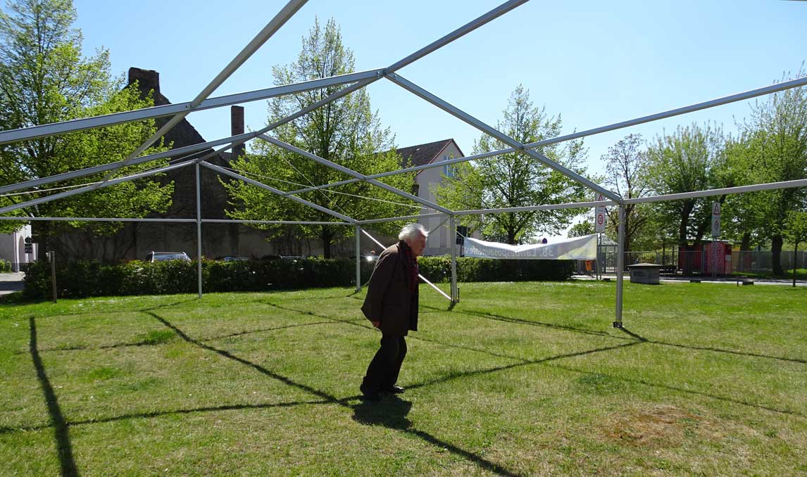 und alles als kleinen Hütten mit denen, die nicht reinkommen, dann woanders laute kleine Pavilions mit Teilen der Gesänge aus Demmin.