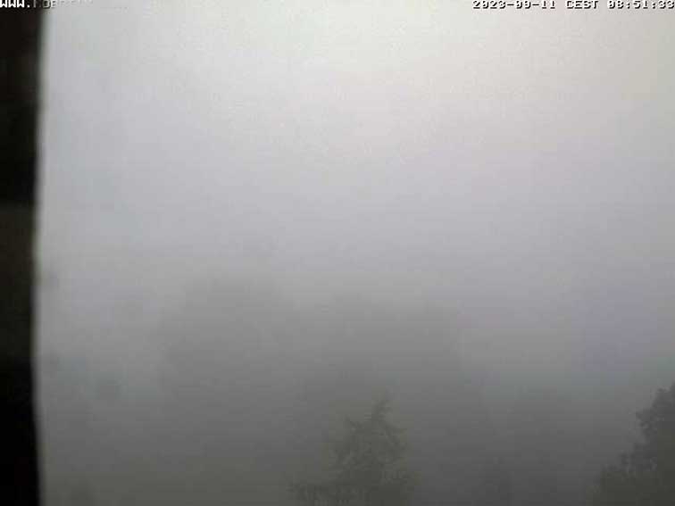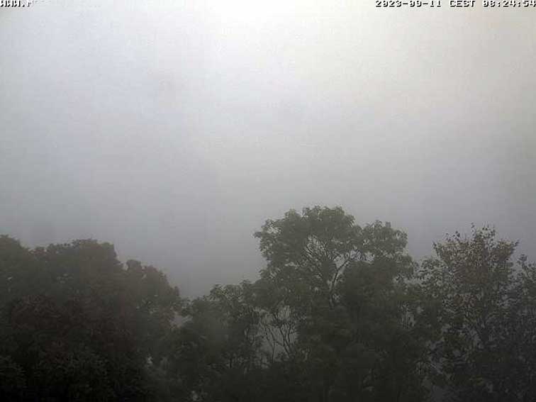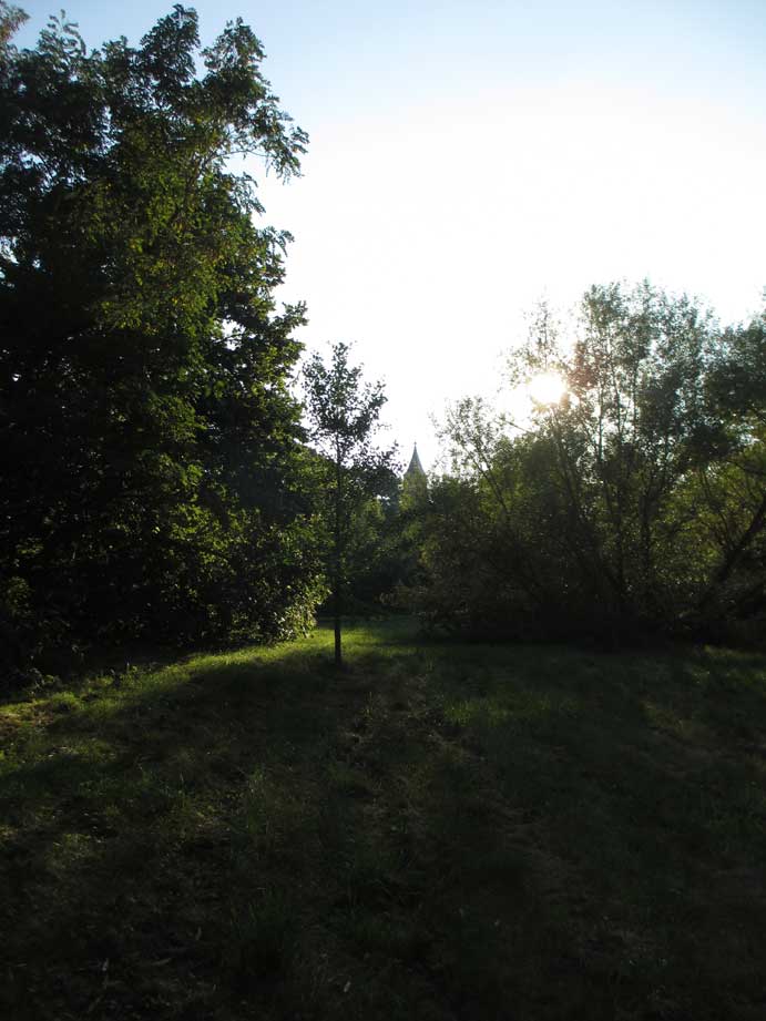 So gehts.Kreuz in den Bäumen des Dorfs von unten und der Orbit über uns.