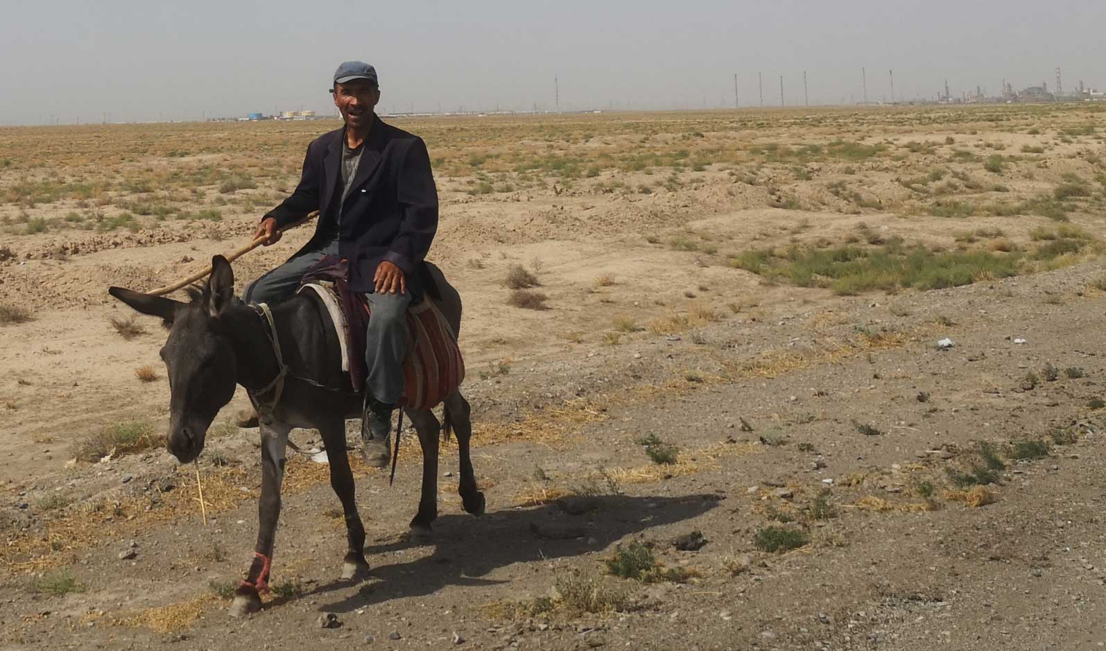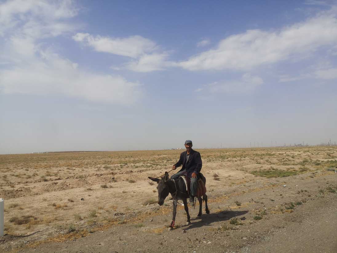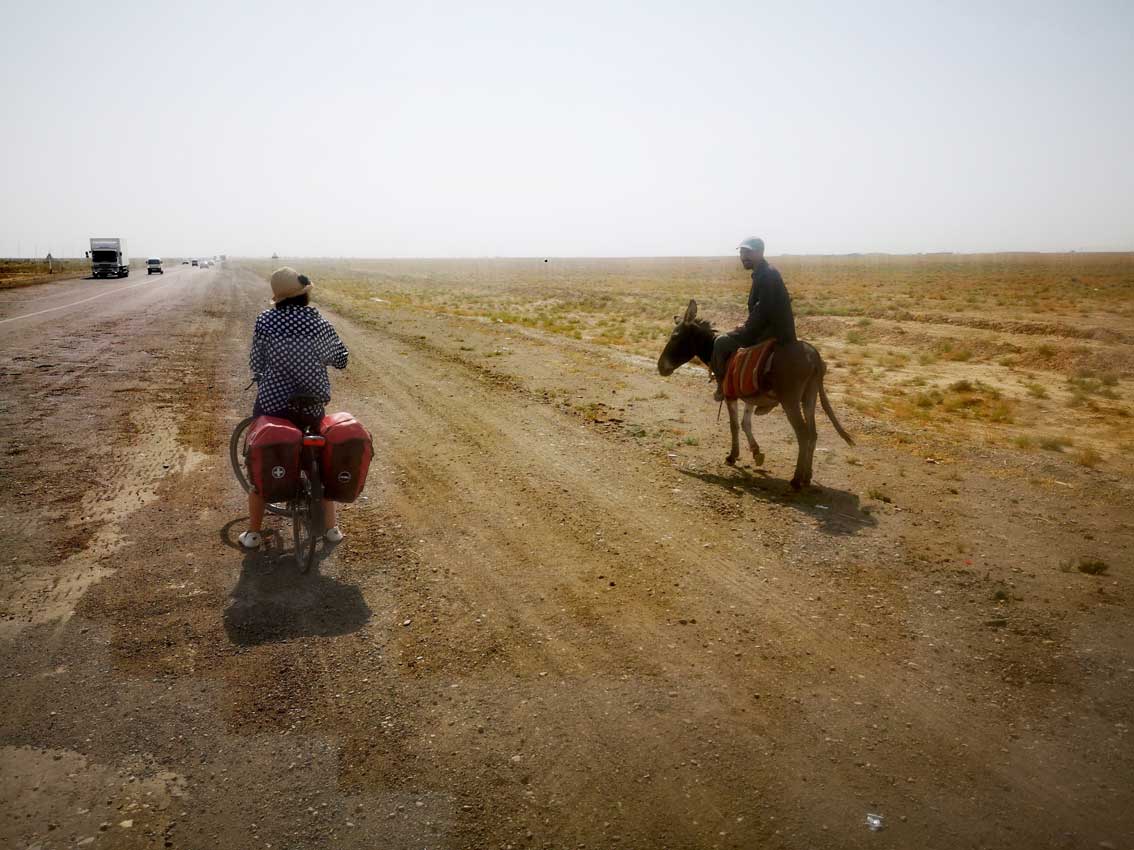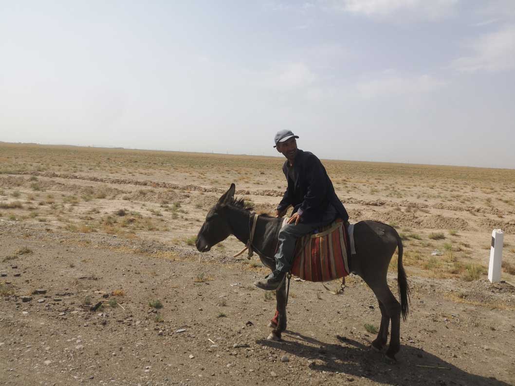die Turkmenen zeigen wie es geht. bene der grossen Strasse auf dem Esel