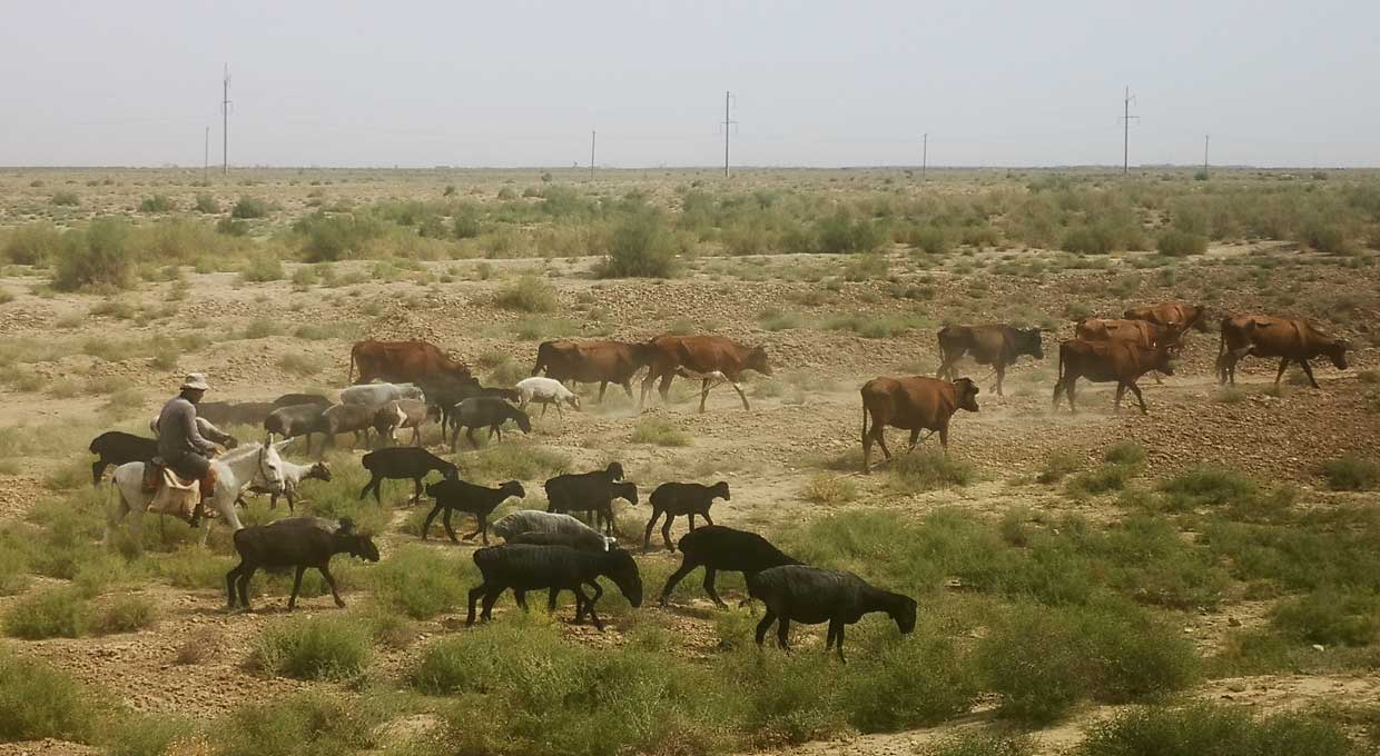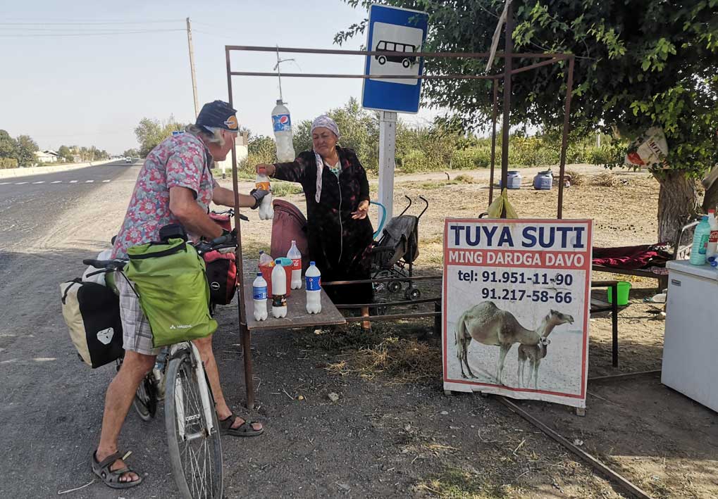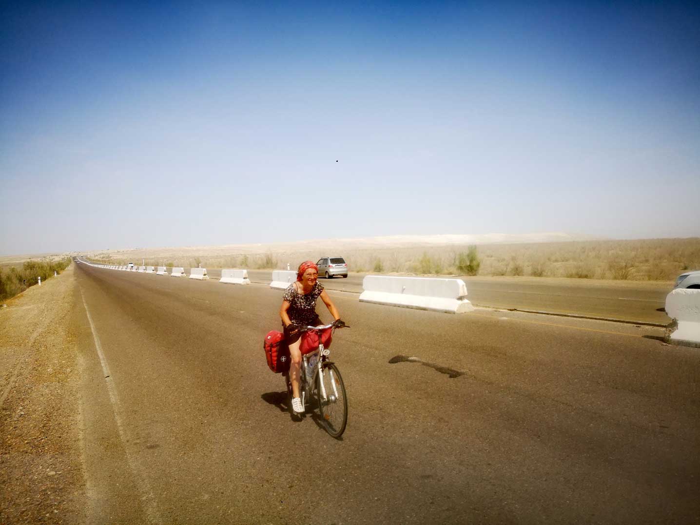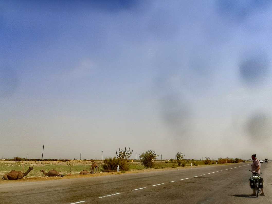 die Turkmenen zeigen wie es geht. bene der grossen Strasse auf dem Esel