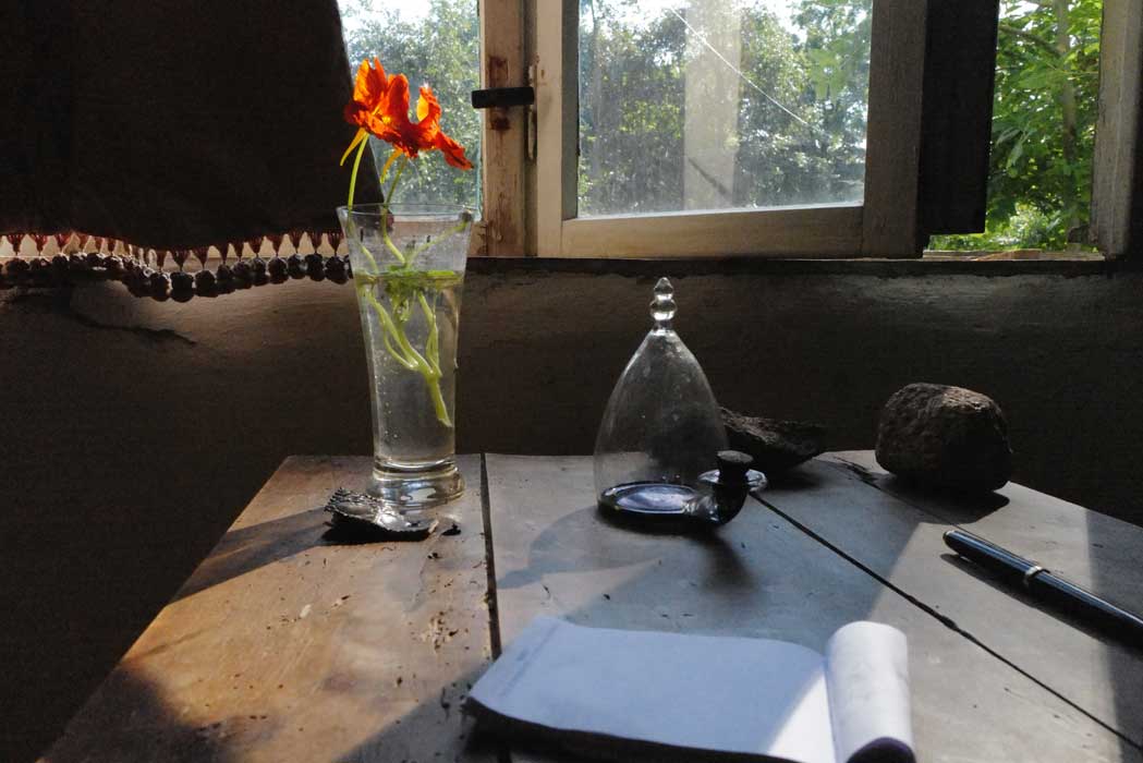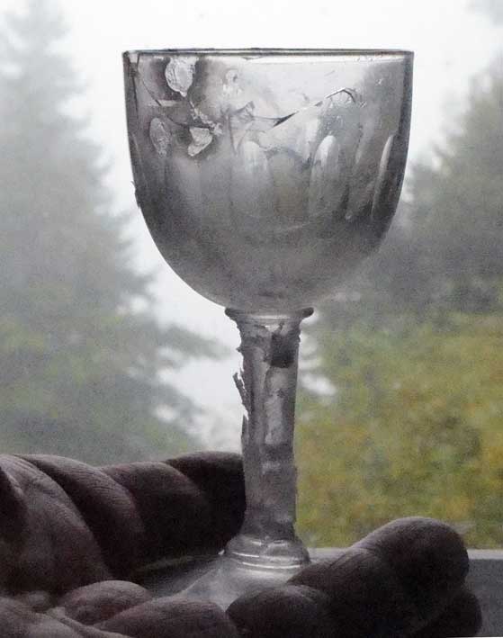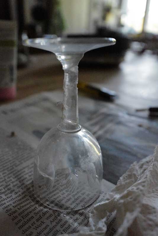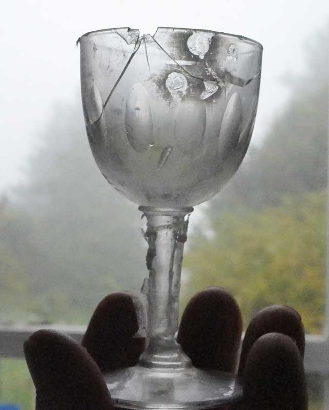 gefallen, umgerissen, gestürzt, zerbrochen, gesplittert wieder zur Form geworden. Vorsichtig gehalten. Ins Licht,
