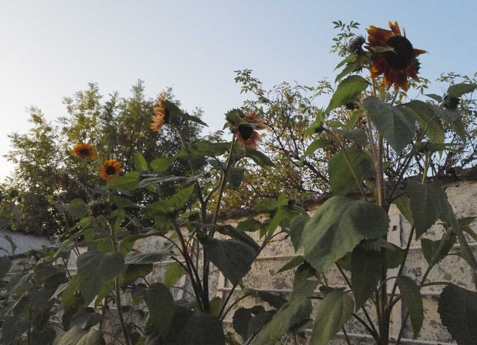 die Sonnenblummen mit neuer Erde von oben und täglichem Wasser nun alle da