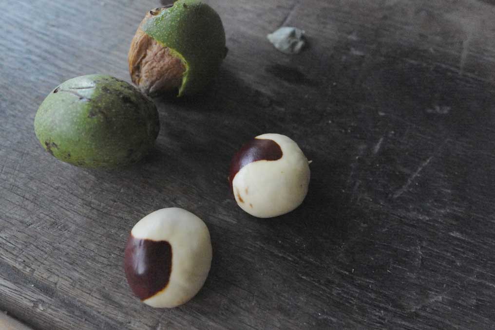 erste Kastanien von hier am Graben und Nüsse