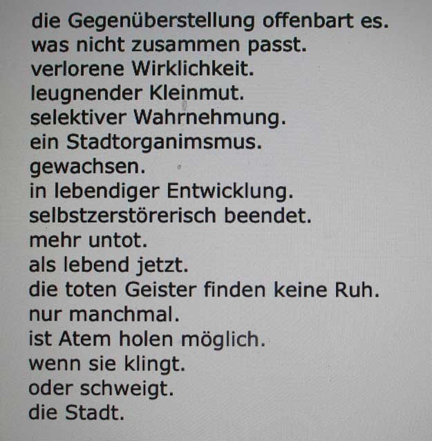 und dann wieder dieser Text, diser grausame Text.