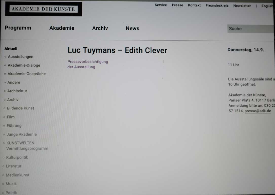 als mail zugeschickt von E.N. Ankündigung einer Ausstellung in der Akademie der Künste in Berlin