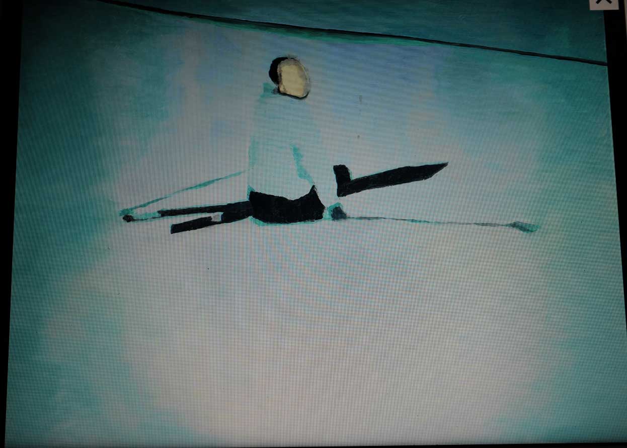 ein Mann im Schnee auf Skier gestürzt ?. L.T. den wir aus Mailand kennen, Prada Stiftung Hitler als Film geeigt auf seine Einladung nun die Nacht mit EC vn ihm eingeladen.