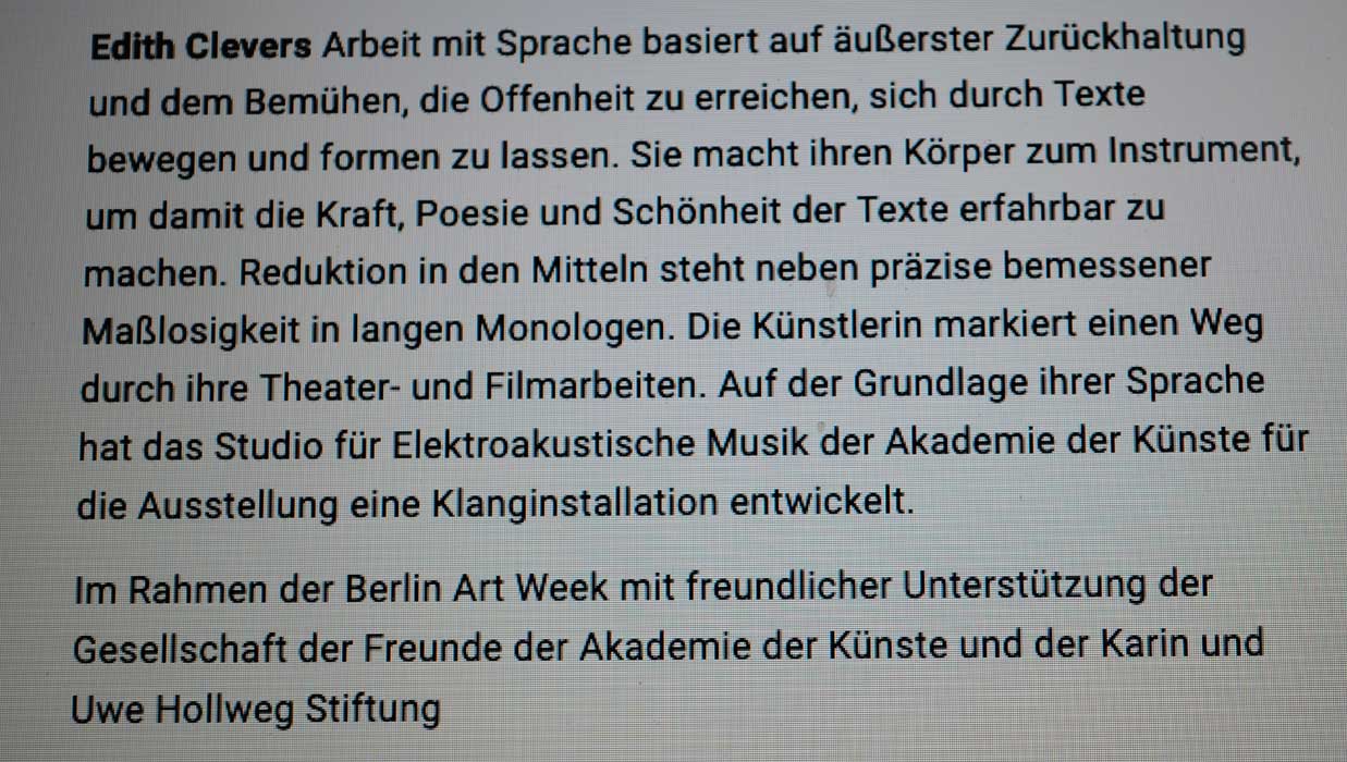 zu Edith Clever in der Ausstellung von Räumen ein Text sonst nichts?