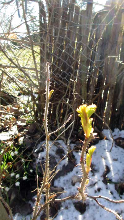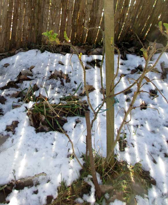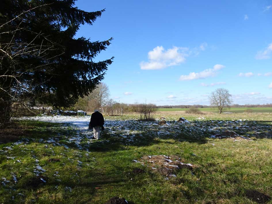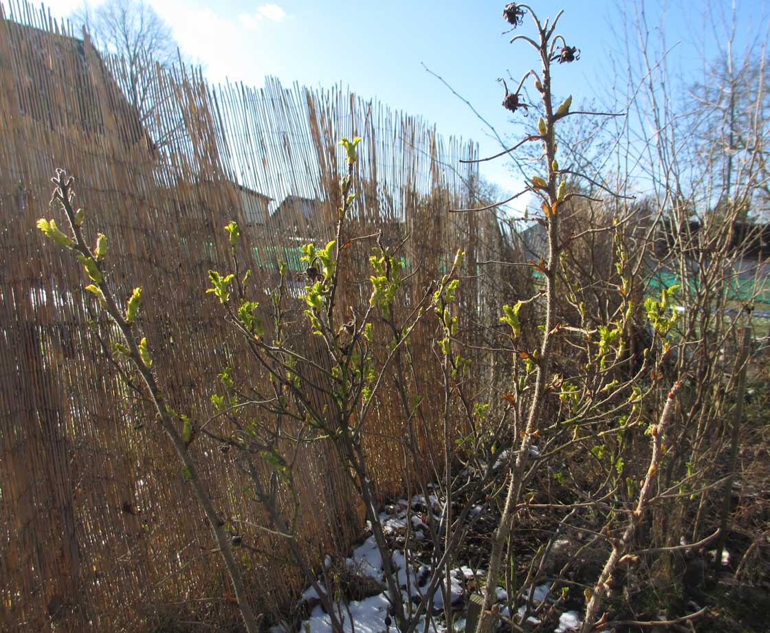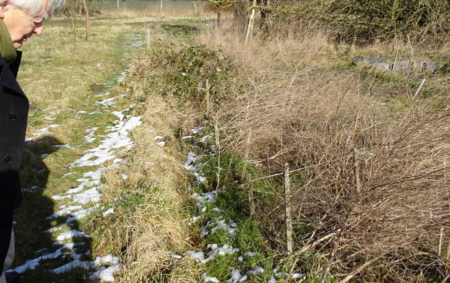 Der Rosenweg zum Spargel zeigt keine Triebe. Den Spargel vorbereiten. Winterkraut raus, einebnen, Pferdedunk rein und aufgehäufelt.