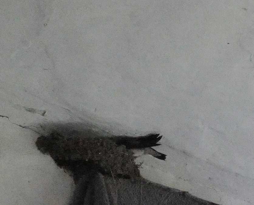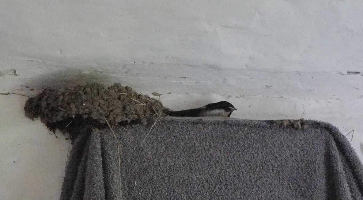 Am Abend war sie immer noch da Nun ausserhalb des Nests. Warten wirs ab, ob die anderen wiederkommen in der Nacht und sie mitziehen dann im Vertrauen auf des Erfahrne.