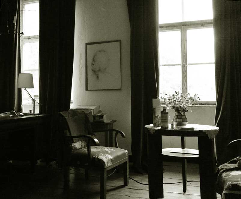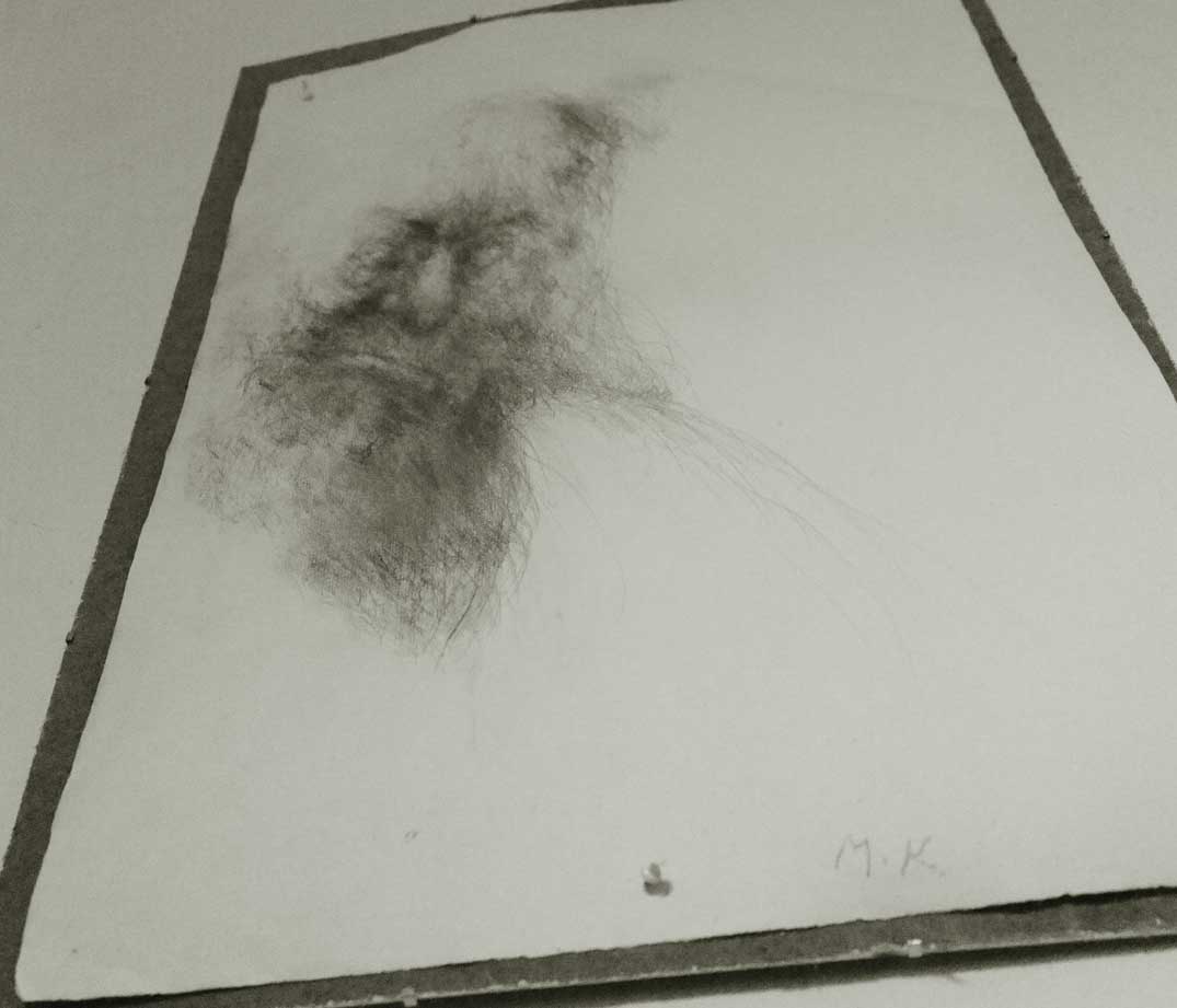 Wir aber etwas behindert in der Bewegung nach einer Haverie beim Holzholen über sich aufschiebenden Teppichen, (Prellung im inneren des Brustkorbs) im Liegen nun sehen und machen Übungen im kleinen Radius des Auges und der Apparate, schwarz weiss den Raum hier im Sommer bei Tag, atmen schwer.