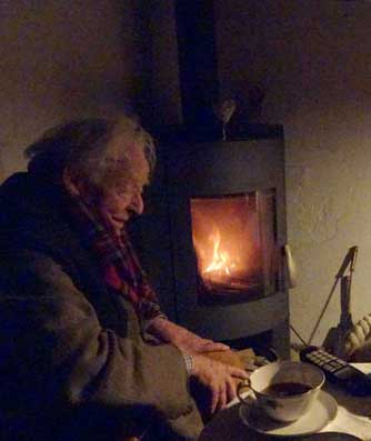 an der Orgel die junge Lehrerin, nun gebrechlich