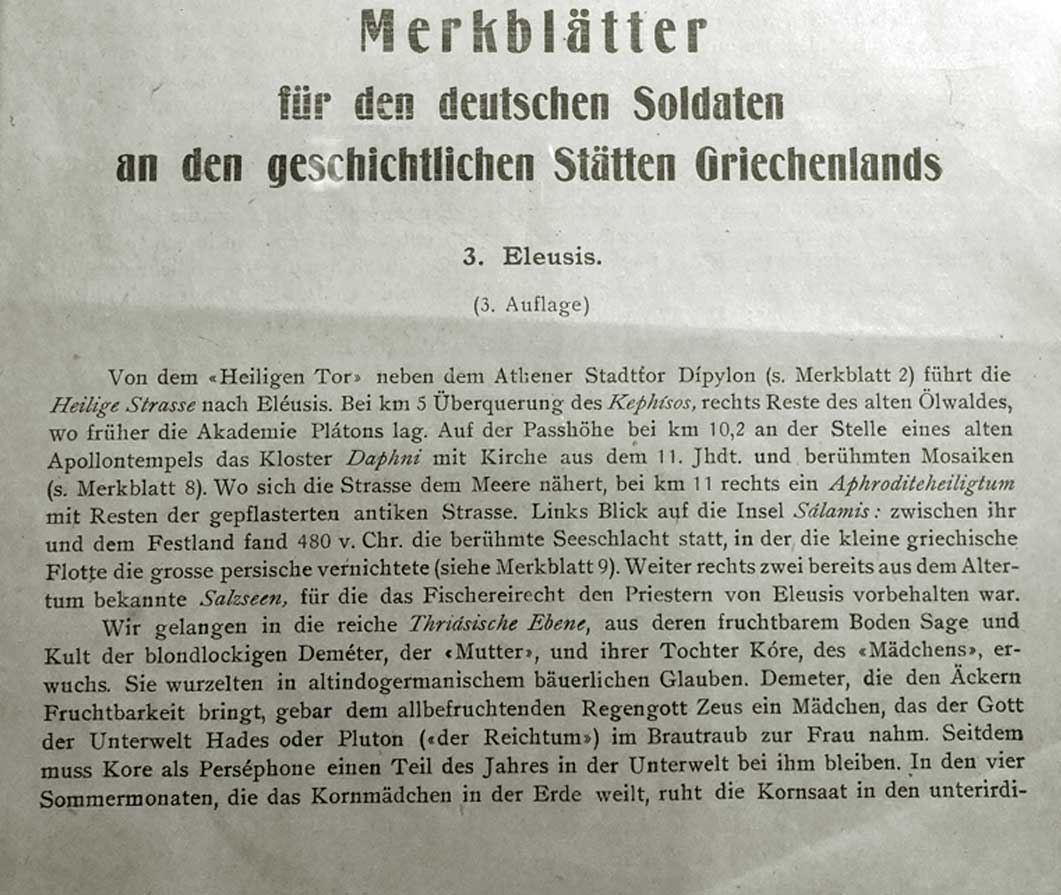 Heute liest sich das so: Der Name Eleusis bedeutet “Ort der glücklichen Ankunft” und steht in Zusammenhang mit “Elysion”, der Insel der Seligen.