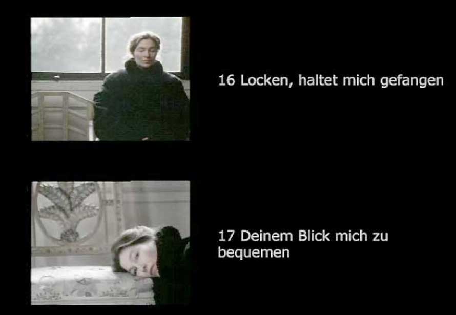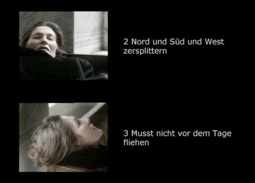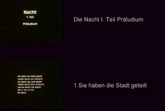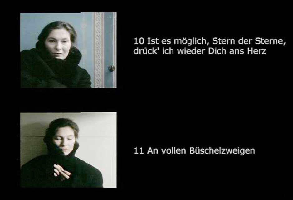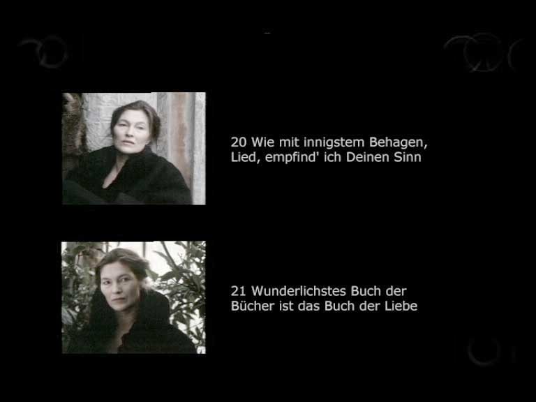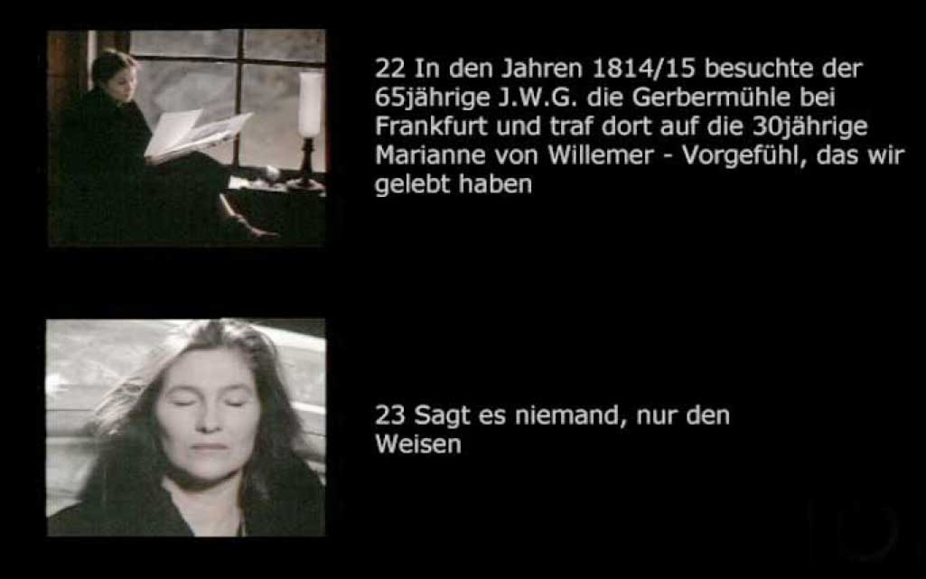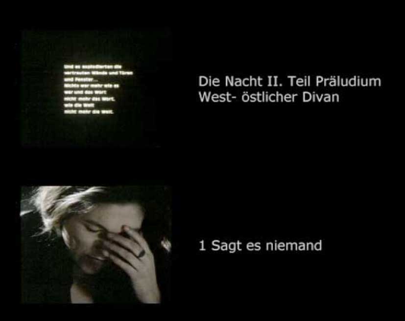 Und dann kommt das, was vor dem 2. Teil der NACHT hier nochmal die Sprache und optische Welt beschwört, aus der Goethezeit in den Gedichten zwischen Goethe und Marianne von Willemer im West-Östlichen Diwan überliefert ist in neuer Erkenntnis auch in der Sprache des weiblichen Teils dieses Dialogs.