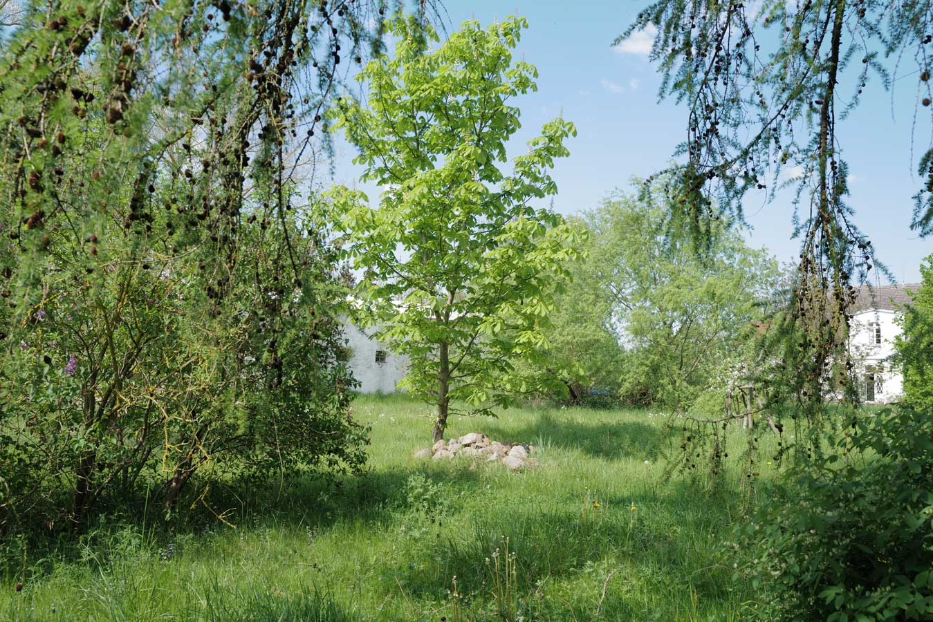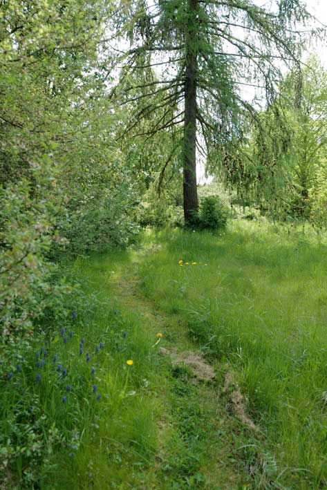 Auch im Mai uns auf leichten Wegen aus Grass friedlich auf den Fundamenten der ehemaligen Ställe gut zu gehen.