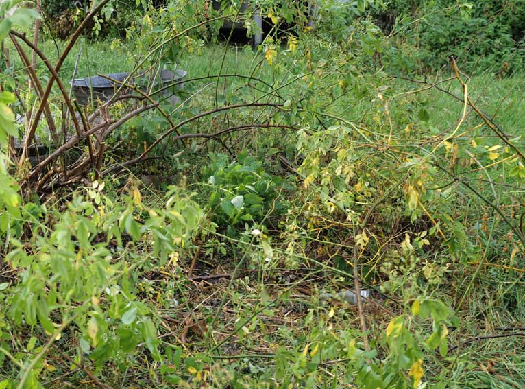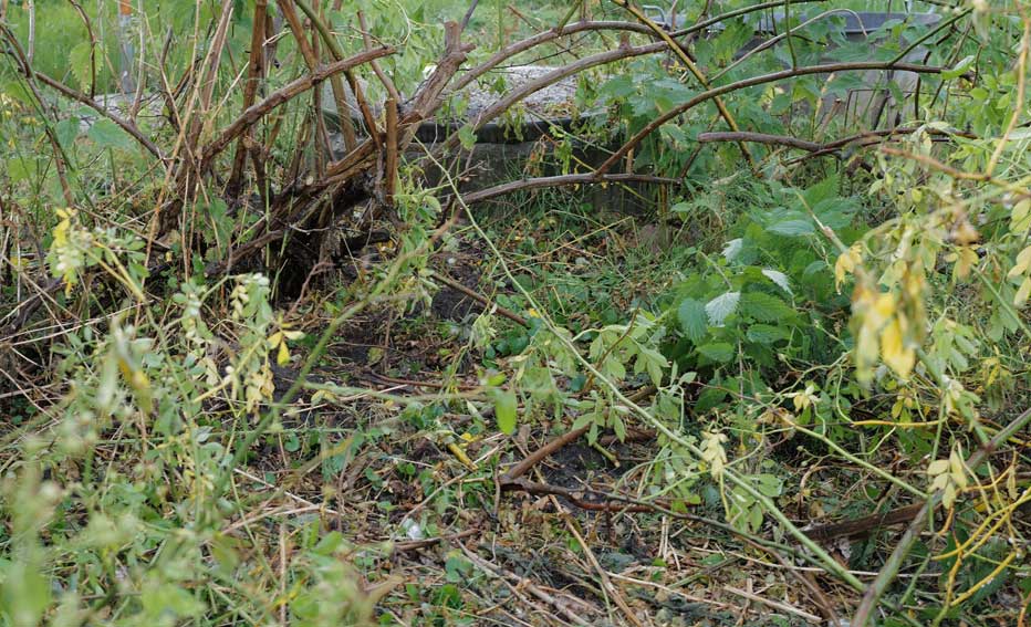 Hier, wo vor kurzem noch eine Rose stand, der Strauch Multiflora, involler Blüte, hat nun die Wühlmaus alles vernichtet, übernacht